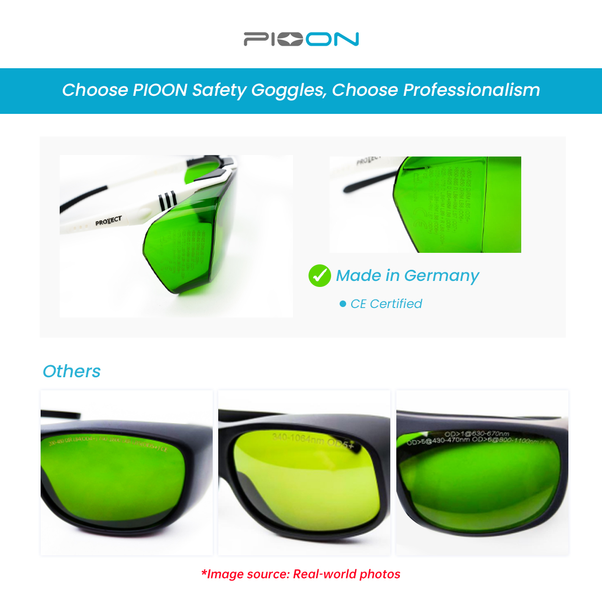 By contrast, the other goggles are less satisfactory clarity. The Pioon goggles, however, not only ensure eye protection for the practitioner but also deliver an almost flawless visual experience, making clinical operations smoother and more precise. These goggles are undoubtedly the ideal choice for laser procedures in clinical practice.
