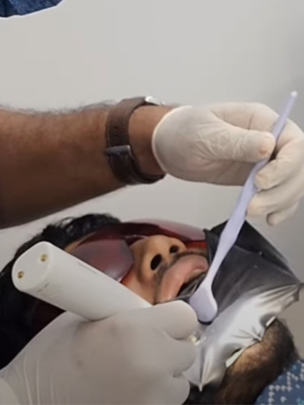 Used for teeth whitening, it can divide the teeth area into four quadrants, with the whitening head precisely the width of one quadrant.